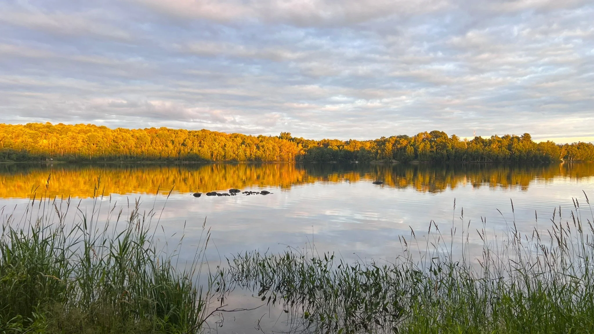 I’m in a cabin by a spring fed lake. I went to sleep with the windows open and the soft sound of rain all around. The sun still lingered in the sky, but I was tired and ready for bed. The light rain is still here this morning as in the sunlight because the days are long in this northern clime, partly, I imagine, to make up for what happens this winter when it disappears and the cold comes.